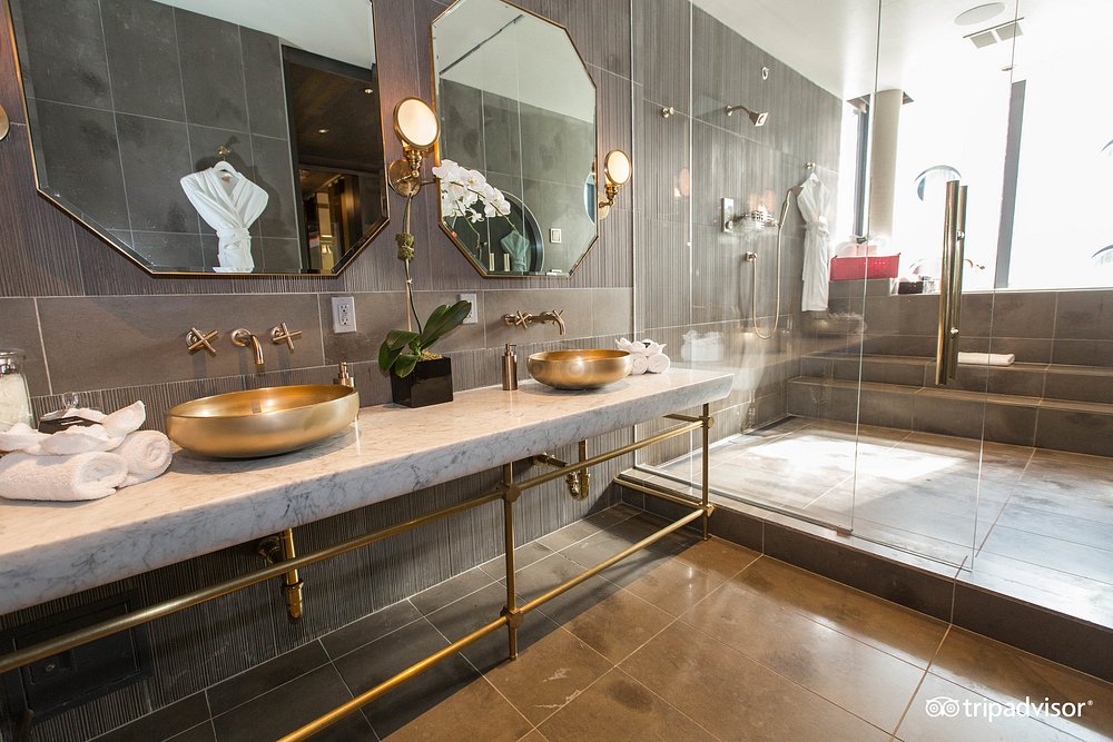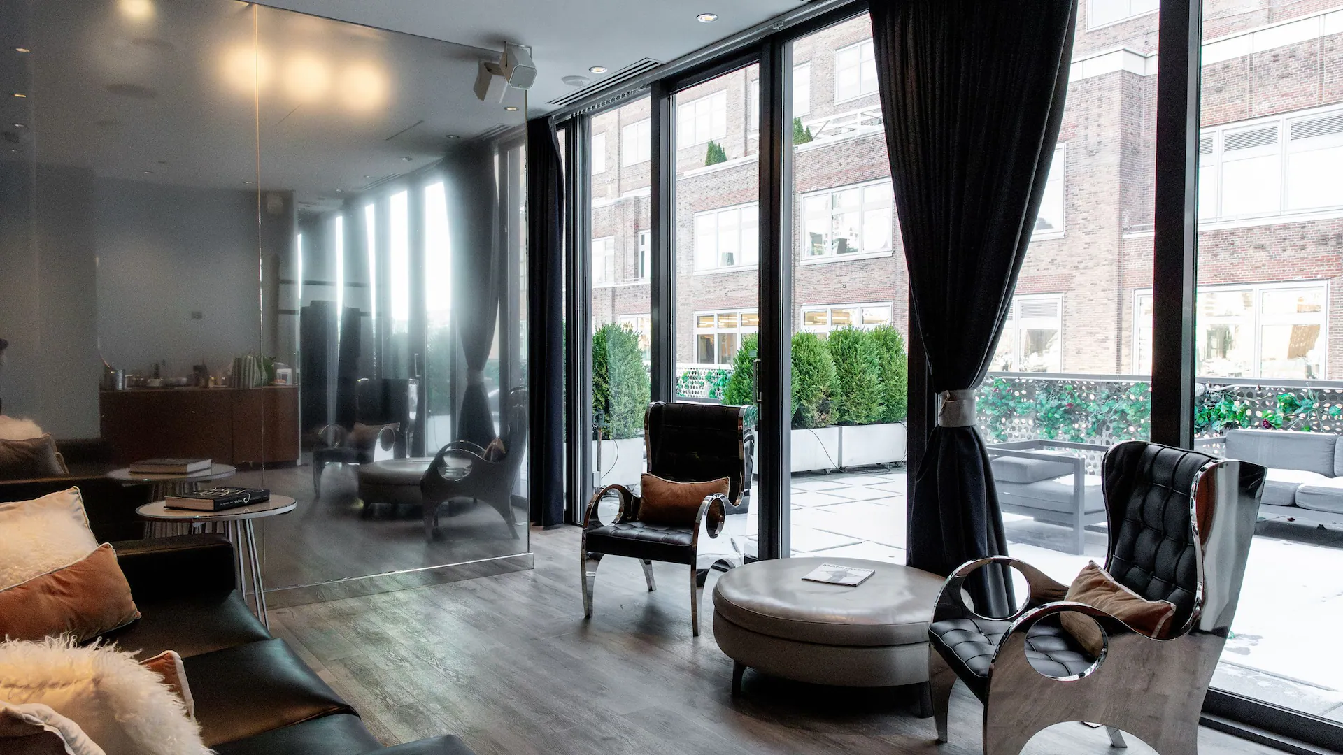 Boutique Chelsea hotel with interior glazing installations including lobby and amenity glass systems, as well as custom guestroom shower enclosures, coordinated within a large-scale adaptive-reuse hospitality conversion.