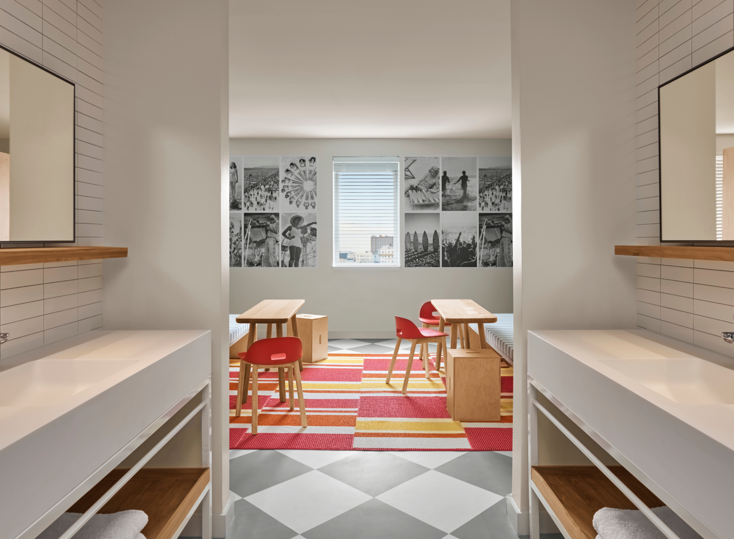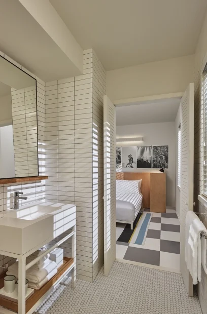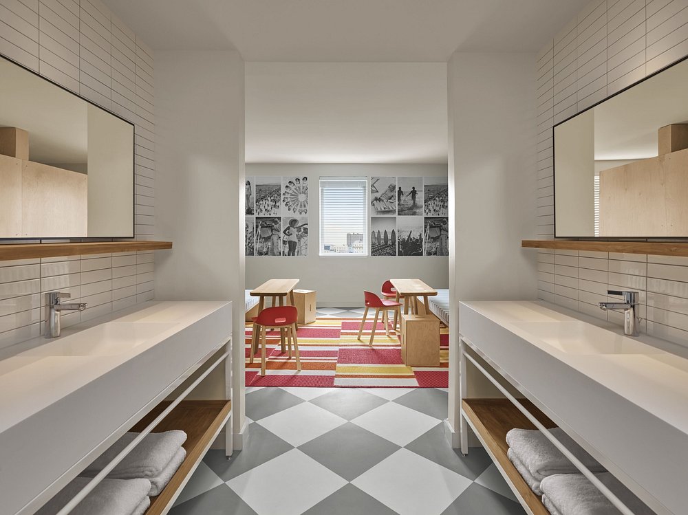 Boutique Asbury Park hotel featuring interior glazing installations including lobby, amenity, and guestroom glass systems coordinated within a large-scale contemporary hospitality redevelopment .