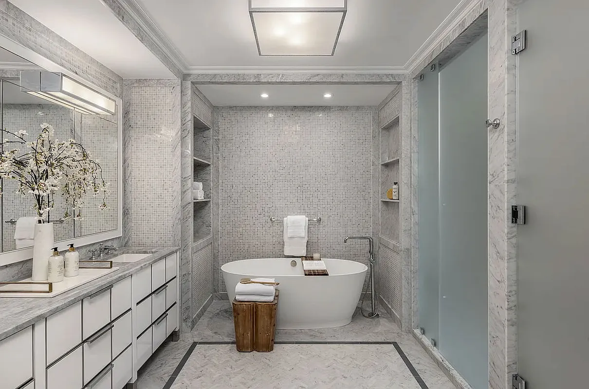 Historic Upper West Side residential building featuring interior glazing installations, amenity partitions, and interior glass systems coordinated within a meticulously restored 12-story pre-war redevelopment .