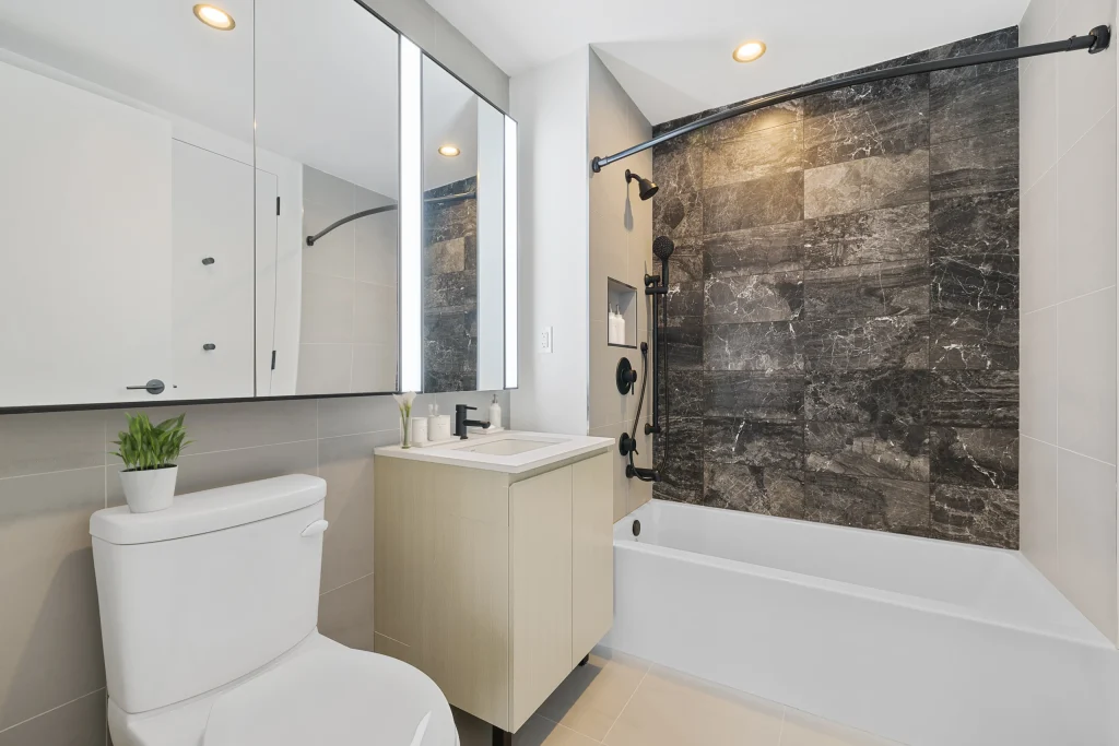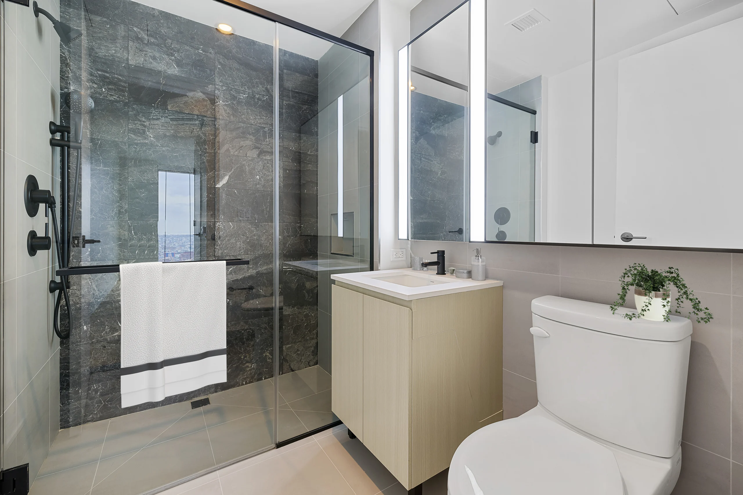Downtown Brooklyn high-rise residential tower featuring interior glazing installations including amenity partitions, lobby systems, and interior glass elements coordinated within a large-scale urban mixed-use development .